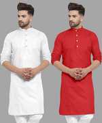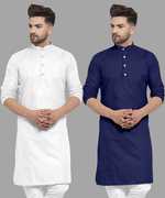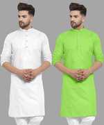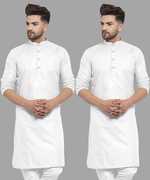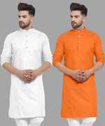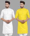 Pack of 2 Men Solid Cotton Blend Straight Kurta (Yellow, White)
