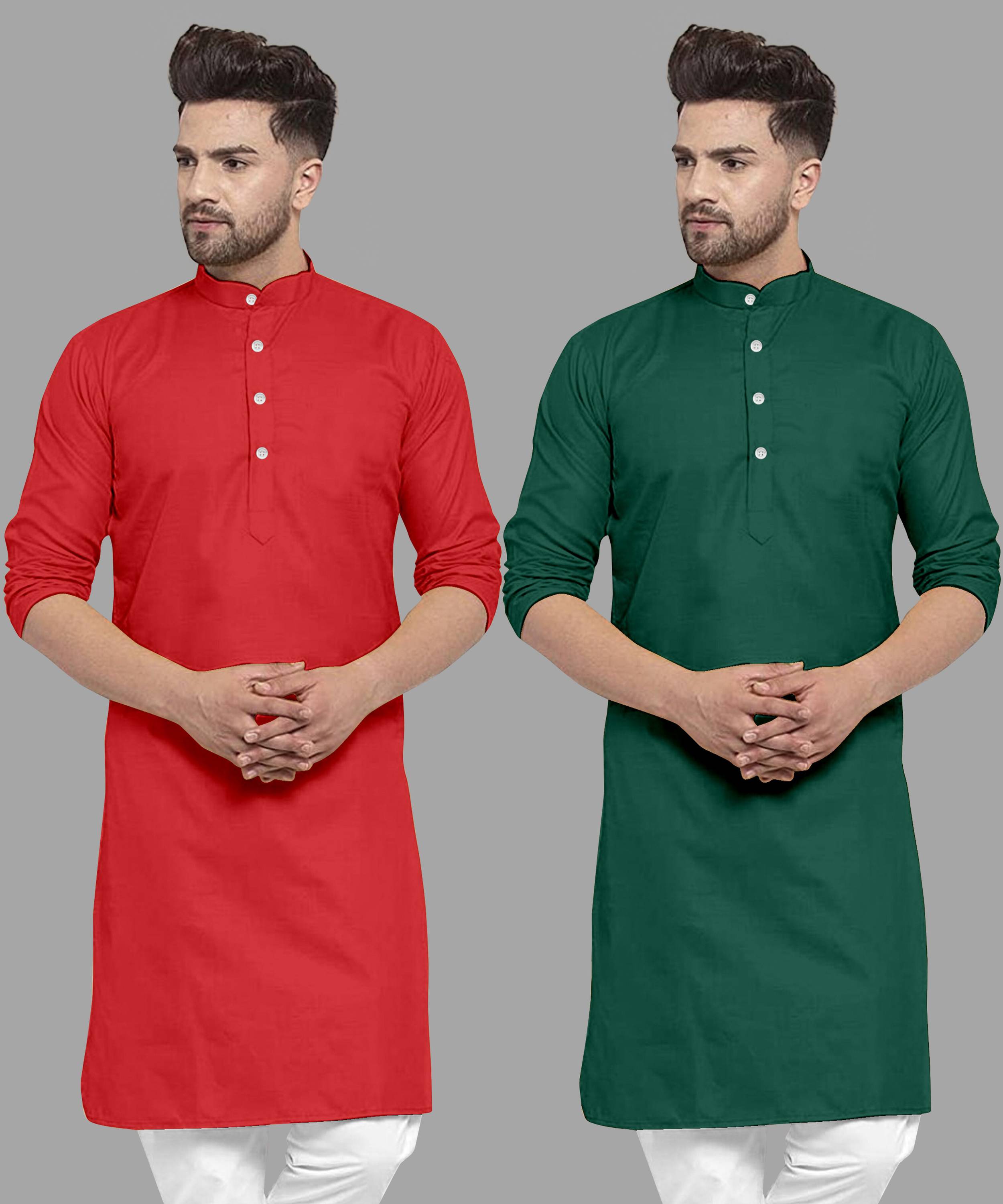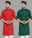 UDANIENTERPRISE Pack of 2 Men Solid Cotton Blend Straight Kurta (Green, Red)