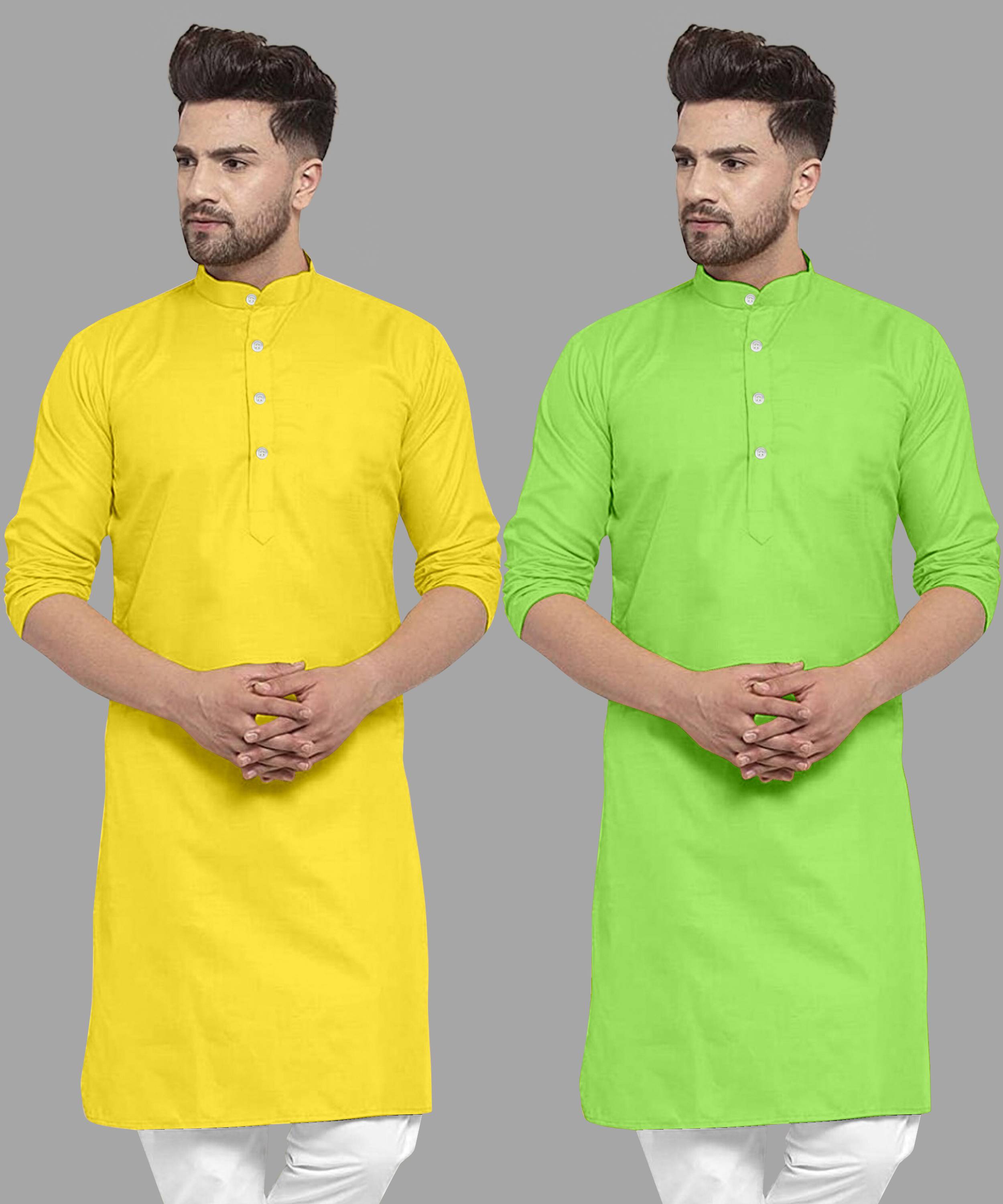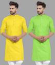 Pack of 2 Men Solid Cotton Blend Straight Kurta (Light Green, Yellow)