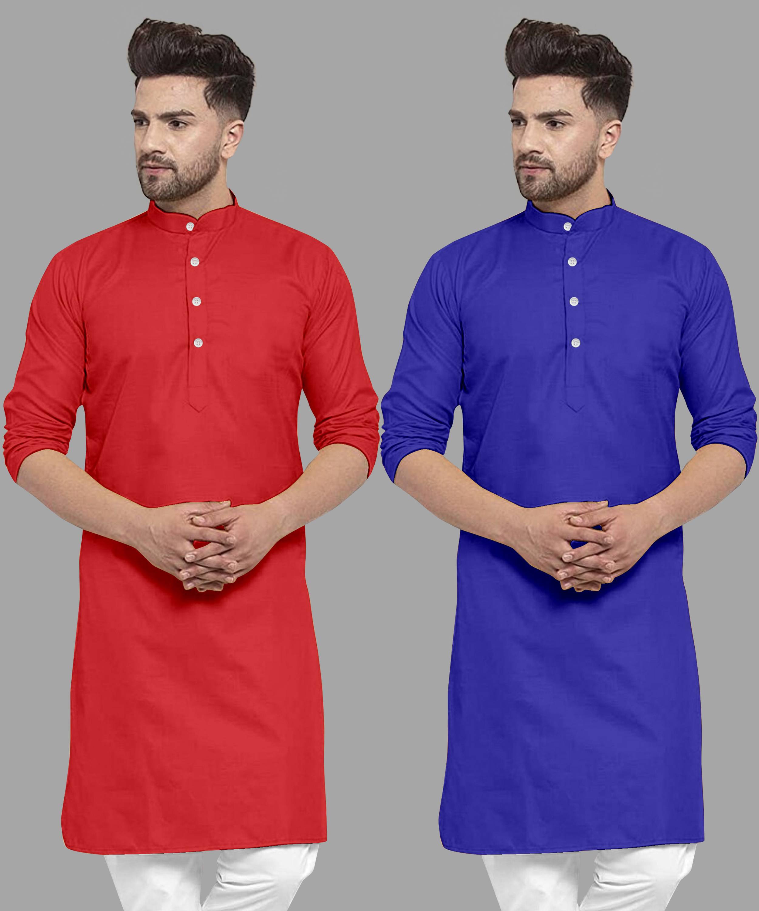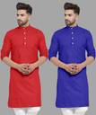 Pack of 2 Men Solid Cotton Blend Straight Kurta (Blue)