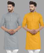 Upgrade your traditional wardrobe with this stylish and comfortable men's cotton kurta, designed for both festive occasions and everyday ethnic style. Made from soft, breathable fabric, this kurta ensures all-day comfort without compromising on elegance. The straight cut, full sleeves, and classic collar make it a perfect choice for festivals, weddings, family functions, or casual outings.