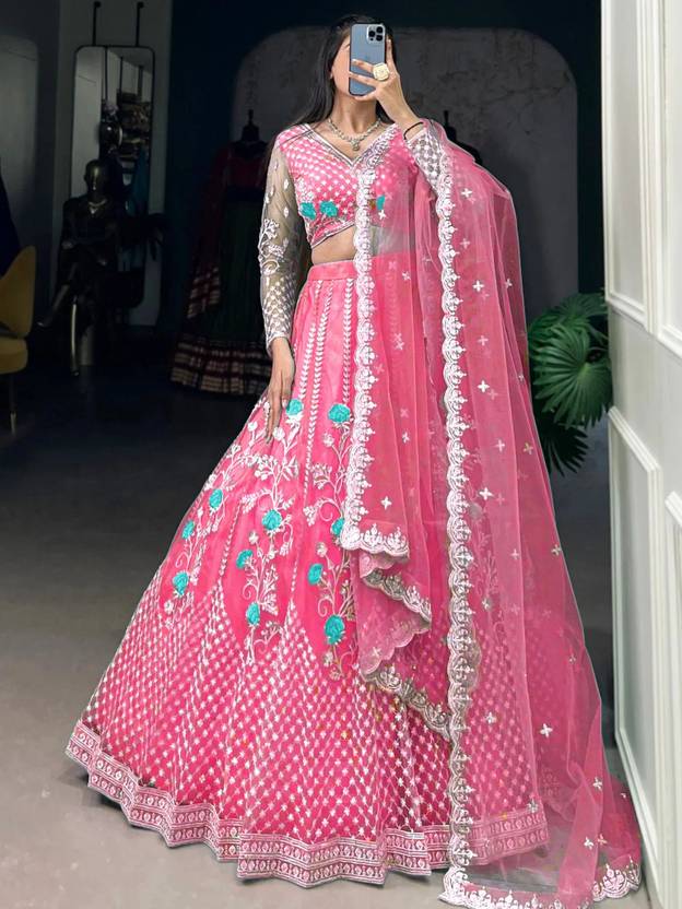Lehenga Fabric :net|| Blouse Fabric : Net ||Inner: Satin with Cancan. Lehenga Work :Embroidred || Blouse Work :Embroidery || Dupatta Work : Embroidery Border Contains: 1 Semi-Stitched Lehenga with Dupatta and unstitched Blouse.