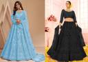 Udbhav Export Embroidered Semi Stitched Lehenga Choli (Light Blue, Black)