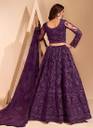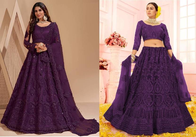 Step into elegance with this vibrant lehenga choli, crafted in fine net and adorned with intricate sequin and zari embroidery. The full-sleeve choli features a classic round neckline, perfectly complementing the voluminous flare of the lehenga. The matching net dupatta adds charm with embroidered borders, making it ideal for festive occasions, sangeet, or wedding ceremonies.