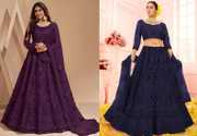 Graceful and feminine, this lehenga choli radiates charm with its pastel tone and delicate embroidery. The elbow-sleeve choli is beautifully embellished with floral motifs, paired with a flowy layered lehenga that features intricate thread and sequin work. The matching dupatta with scalloped edges enhances the outfit’s romantic appeal — perfect for receptions, engagements, or elegant day functions.