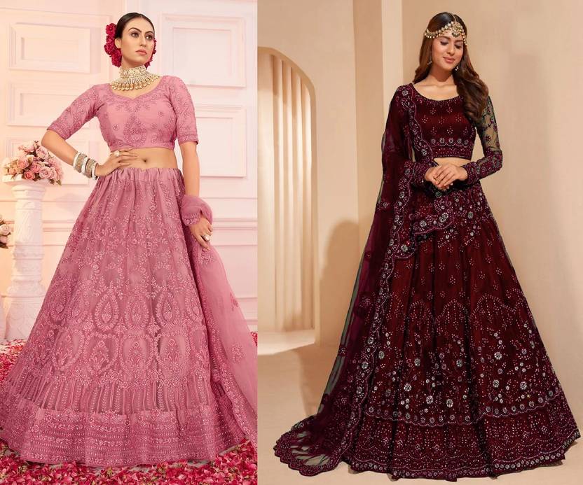 Materials: Lehenga Heavy Net | Blouse Fabric: Net & Silk | Inner: Satin. The Lehenga Was Semi-Stitched with Designs & Heavy Zari & Thread Work. Best pretty look and best quality. Your favorite and get attraction in every event. Style Tip: For an elegant look, pair this long lehenga choli with statement earrings & high heels. This is the perfect gift for your sister for this Raksha Bandhan, Navratri, and Diwali. Christmas, New Year. The color is slightly different due to your visual setting of the monitor and mobile screen.