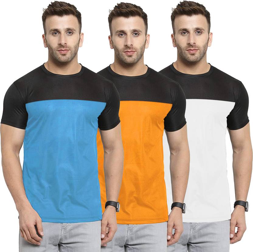 UDI n ADI Pack of 3 Men Colorblock Round Neck Polyester Light Blue, White, Yellow T-Shirt