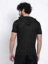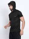 Polyester Half Sleeve Hooded T-shirt with Dryfit anti sweat material with sweat absorbing. Ideal for Any gym, workout, running, jogging, bodybuilding, cricket, yoga, night wear, sportswear, Trekking, Camping, Swimming other outdoor activities.