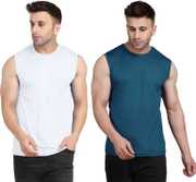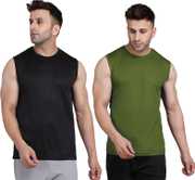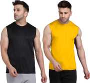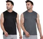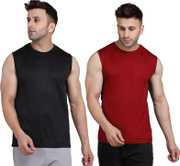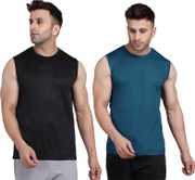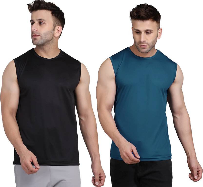 Polyester sleeveless Tshirt with Dryfit anti sweat material with sweat absorbing. Ideal for Any gym, workout, running, jogging, bodybuilding, cricket, yoga, night wear, sportswear other outdoor activities.