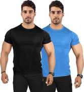 UDI n ADI Solid Men Round Neck Light Blue, Black T-Shirt