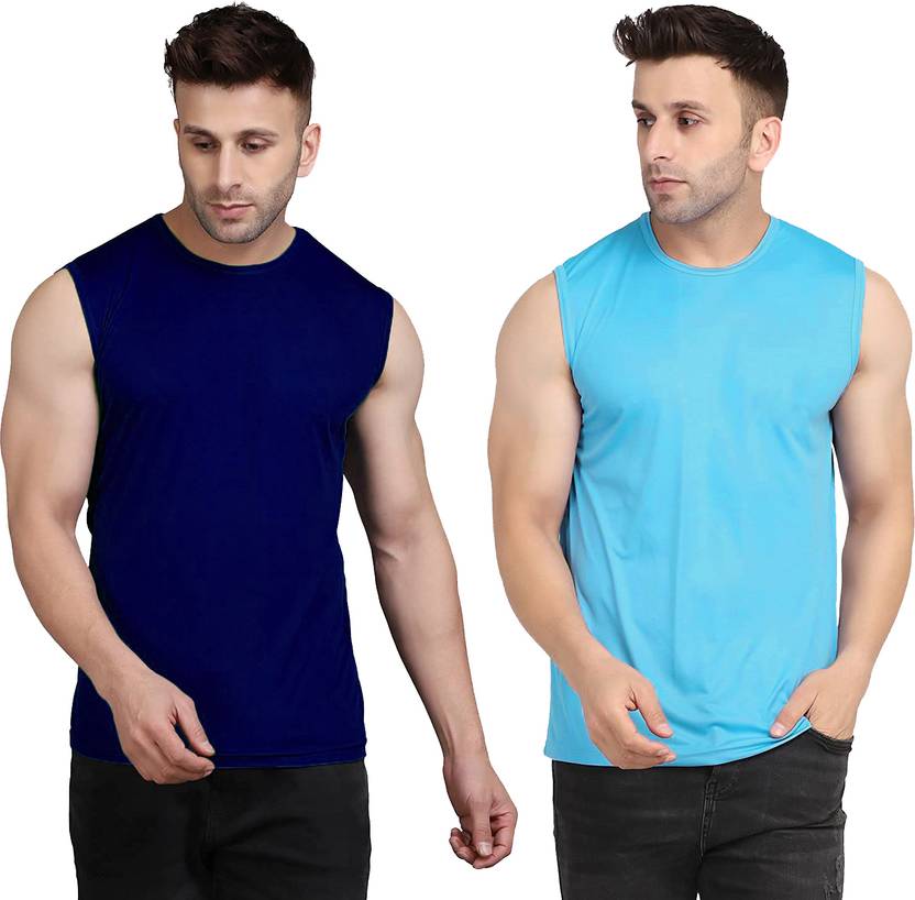 Polyester sleeveless Tshirt with Dryfit anti sweat material with sweat absorbing. Ideal for Any gym, workout, running, jogging, bodybuilding, cricket, yoga, night wear, sportswear other outdoor activities.