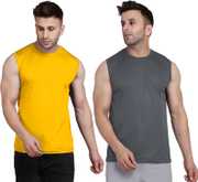 Polyester sleeveless Tshirt with Dryfit anti sweat material with sweat absorbing. Ideal for Any gym, workout, running, jogging, bodybuilding, cricket, yoga, night wear, sportswear other outdoor activities.