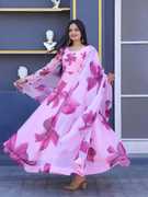 Update your Gown collection with this exquisite daily Woman’s luxury gown from JK Style. Digital Printed Gown-Dupatta with Flower Print , It looks Adorable for women, it Designed to flatter all body types, gowns for women combine the best parts of western and Indian wear into one stunning ensemble.............. Fabric & Work :- Rich Big Flower Digital Printed Georgette Fabric With With Samosa Design Lace Border......... Lining :- Cotton (Full Inner Top To Bottom)......... Top Flair :- 4.5 Meters (Umbrella Flair)....... Sleeve Type :- 3/4 Sleeve......... Neck Type :- Fancy Round Neck........ Stitching Type :- Standard Stitching........ Top Length :- 52 Inch..... Type :- Readymade Gown..... Containt :- Dupatta (Comes With Contrast Matching Silk Dupatta)
