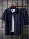 ugam traders Men Solid Dark Blue Top & Shorts Set