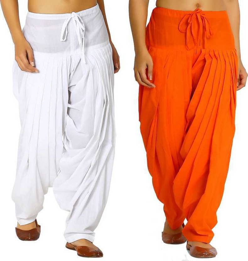 Pure Cotton Solid Women ["White","Orange"] Salwar