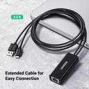 3.3ft Long Cable Design: The Micro USB and USB power supply cable of the UGREEN Chromecast Ethernet Adapter are designed to be 3.3ft long, so you don't need to worry about distance limitations and easily connect the TV and ethernet cable.