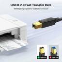 High Speed Transfer: Up to 480 Mbps transfers data speed for USB 2.0 devices, the USB Type B cable is backwards compliant with full-speed USB 1.1 (12 Mbps) and low-speed USB 1.0 (1.5 Mbps). Compared with WIFI connection, this USB B Cable provides a more stable data transmission and offer a more efficient work way for you.