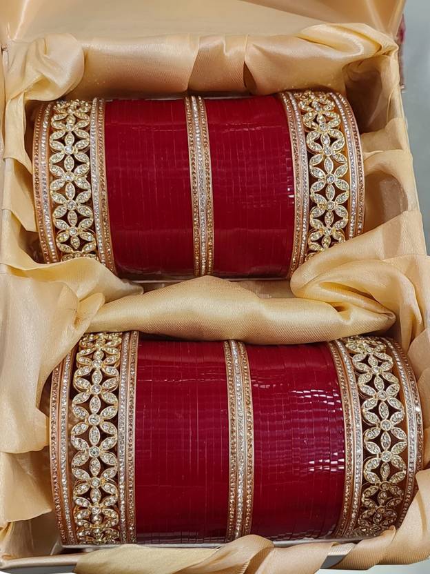 Crafted from premium brass, these chudas ensure a comfortable fit for extended wear. The lightweight construction makes them easy to wear throughout wedding celebrations and engagements, without causing discomfort or strain on the wrist. Their skin-friendly design ensures no irritation, making them ideal for prolonged use. These chudas are ideal for those who seek both style and comfort in their jewellery, offering a seamless blend of elegance and ease.