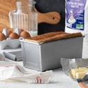 Oven Safe: Up to 450°F (232°C), Product Weight: Lightweight, Shape: Rectangular, Weight Capacity: 400g, Lid Type: Sliding lid for even baking, Color: Silver, Size (400g): 7 x 3.5 x 3.5 inches, Material: High-quality non-stick coated metal