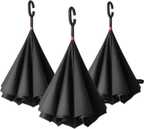 UK Enterprise PACK 3 : C Type Handle Double Layer Inverted Upside Down Reversible Umbrella (Black)
