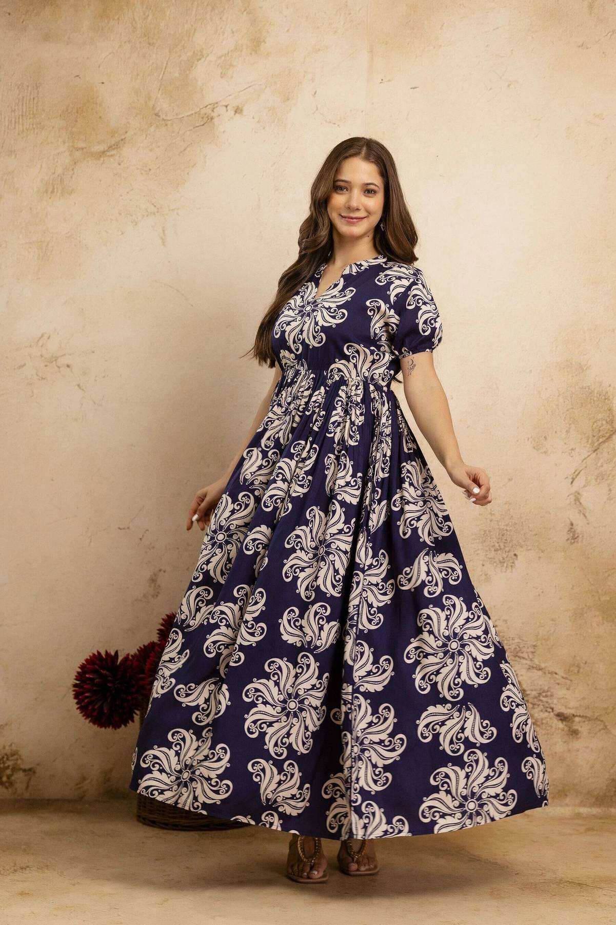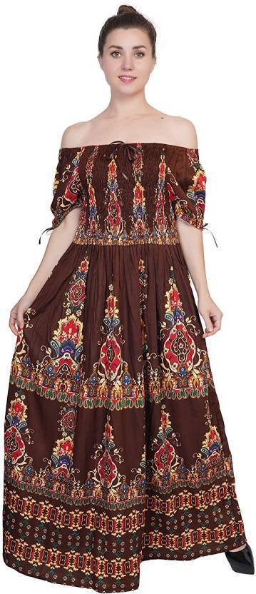 Printed Viscose Rayon Semi Stitched Flared/A-line Gown (Brown)