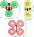 BABY BATH TOYS: delightful collection of baby bath toys, perfect for a fun-filled day! The set features adorable cartoon images of a bug, butterfly, and bee, designed to easily attract and captivate toddlers. These cute sensory toys not only bring joy but also aid in improving hand-eye coordination, concentration, and patience in babies. HIGH QUALITY & SAFE MATERIAL: All bath toys are made from high-quality ABS plastic and premium silicone. The smooth surface and soft silicone buttons ensure a safe playtime experience for your little one. Rest assured, these bath toys are non-toxic, durable, and completely free from harmful substances, making them ideal companions for babies aged 0 to 3 years. MULTIFUNCTIONAL FUN: These versatile bath toys can be easily adsorbed on smooth bathtub surfaces, turning bath time into a fun-filled adventure! Watch as the water rushes to the leaves, making the toys keep turning and bringing joy to your baby during every bath time. Whether indoors or outdoors, these bath toys are perfect for playtime on the dining table, in the bathtub, or even in the car window – sharing happy moments with your baby anytime, anywhere! ENHANCE FINE MOTOR SKILLS: Spinner Toy set comes in 3 different styles with bright and engaging colors that immediately catch your baby's attention. The interactive play keeps your baby engaged and entertained during outdoor activities, travel, mealtime, and bath time, soothing crying babies with its captivating charm. Moreover, these toys are excellent for training a baby's vision, tactile, and hearing senses, fostering improved hand-eye coordination, concentration, and patience. PERFECT FOR GIFTING: If you're searching for the perfect gift for your baby, look no further! These top-rated baby bath toys are an ideal choice for various occasions, including Christmas, birthdays, Diwali celebrations, holidays, or even daily toys. Don't miss the chance to surprise and delight your precious little ones with these adorable and entertaining bath toys!