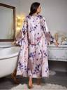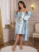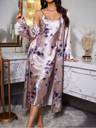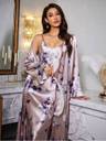 Indulge in luxurious comfort with this elegant satin nighty and robe set in a soft shade adorned with delicate purple and white floral prints. Crafted from premium satin, it offers a silky-smooth feel against the skin and a graceful sheen that exudes sophistication. The set features a sleeveless nighty with a flattering neckline and a matching robe with a tie-up satin belt for an adjustable fit. Perfect for special nights, lounging, or gifting, this nightwear combines style, comfort, and elegance.