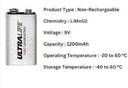 ULTRALIFE 1200Mah 9V U9VL-JPBP Lithium Battery