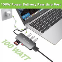 Ultraprolink 7 in1 Type C Hub Adapter,HDMI,Card Readers,100W PD,3 USB for MacBook UL1056 USB Hub (Grey)