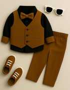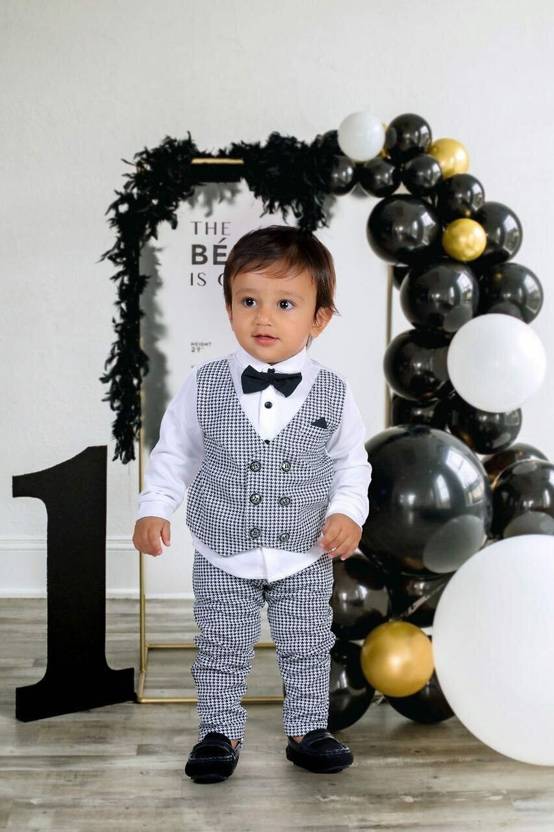 ULTRINA Baby Boys Party(Festive) Waistcoat Pant, Shirt, Bow Tie (WHITE)
