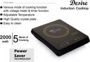 With the NIRLON Desire Ultron 2000 Watt Induction Cooktop, improve your cooking experience. This cutting-edge kitchen gadget has a trendy design that makes it a fashionable addition to any kitchen. With its simple touch control and visual display, our induction cooktop delivers a seamless cooking experience for both beginning and experienced cooks. This cooktop heats up quickly and effectively thanks to its powerful 2000-watt engine, saving you important time in the kitchen. Because of the consistent heat distribution provided by the micro crystal glass induction surface, it is ideal for a variety of cooking tasks. The surface is simple to clean, making cleanup after cooking easy. Our induction cooktop is made for easy maintenance, so say goodbye to sticky stains and smoking residue. Use the eight pre-programmed cooking settings designed for Indian food.You can easily make your favorite dishes, including curries, idlis, chapatis, dosas, and more, by heating milk. A versatile addition to your culinary arsenal, it also has settings for sautéing, deep frying, and pressure cooking. The NIRLON Desire Ultron 2000 Watt Induction Cooktop will up your food game. Enjoy the comfort, effectiveness, and precision it gives to your culinary explorations by placing your order right away.