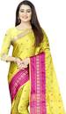 This saree from the house of Uma Textiles is made from Cotton silk and is Yellow in colour. Uma Textiles Ethnic Sarees comes with an Unstitched Blouse Piece, Which can be Stitched according to Your Taste and Preference. This Saree is Crafted by Skill Craftsmen without Compromising on its Quality. With This Beautiful Design and Fabric, This Saree will fetch You Oodles of Compliments and Praise.We brings You this Exclusive Latest and Trendy Cotton Blend Material Sarees Which is Designed Keeping Our Valuable Customers Tastes and Preferences in Our Mind. Umatextiles Sarees at a very Reasonable Price. The Material is Soft and Good. Pair this saree with a clutch and a pair of fashion sandals or any casual footwear of your choice for a casual look when dressing up for a party. You can also pair it with a pair of earrings and bangles when adorning this outfit for a festive occasion