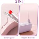 2-IN-1 AUTOMATIC THREADER & SEAM RIPPER: This compact hand sewing tool combines two essential sewing accessories in one an automatic needle threader and a seam ripper. The dual head design ensures you can seamlessly transition between threading hand needles and removing unwanted stitches, making it a must-have for your sewing and crafting projects.PREMIUM DURABILITY: Crafted with high-quality stainless steel, housed with premium and durable ABS material, the threader ensures strength and longevity. It's sturdy and resistant to rust, providing you with a reliable and durable sewing tool for embroidery, crafts, or regular hand sewing.RETRACTABLE AND COMPACT DESIGN: The retractable feature ensures that both the threader and seam ripper are safely hidden when not in use, preventing accidental injuries. Its compact size makes it easy to carry in your sewing kit or bag, providing convenience for on-the-go sewing needs.MULTIPURPOSE SEWING ACCESSORY: Designed for hand sewing, embroidery, and various crafts, this threader is ideal for hobbyists and professionals alike. Its user-friendly features, dual functionality, and robust build make it an ideal handy sewing accessory suited for a variety of creative endeavors.DESIGNED FOR PRECISION HAND STITCHING: The easy needle threader simplifies threading process on fine needles, reducing strain on your eyes, while the sharp seam ripper promises precise stitch removal without damaging fabrics. This sewing tool enhances accuracy, making it ideal for detailed embroidery and intricate craft projects.