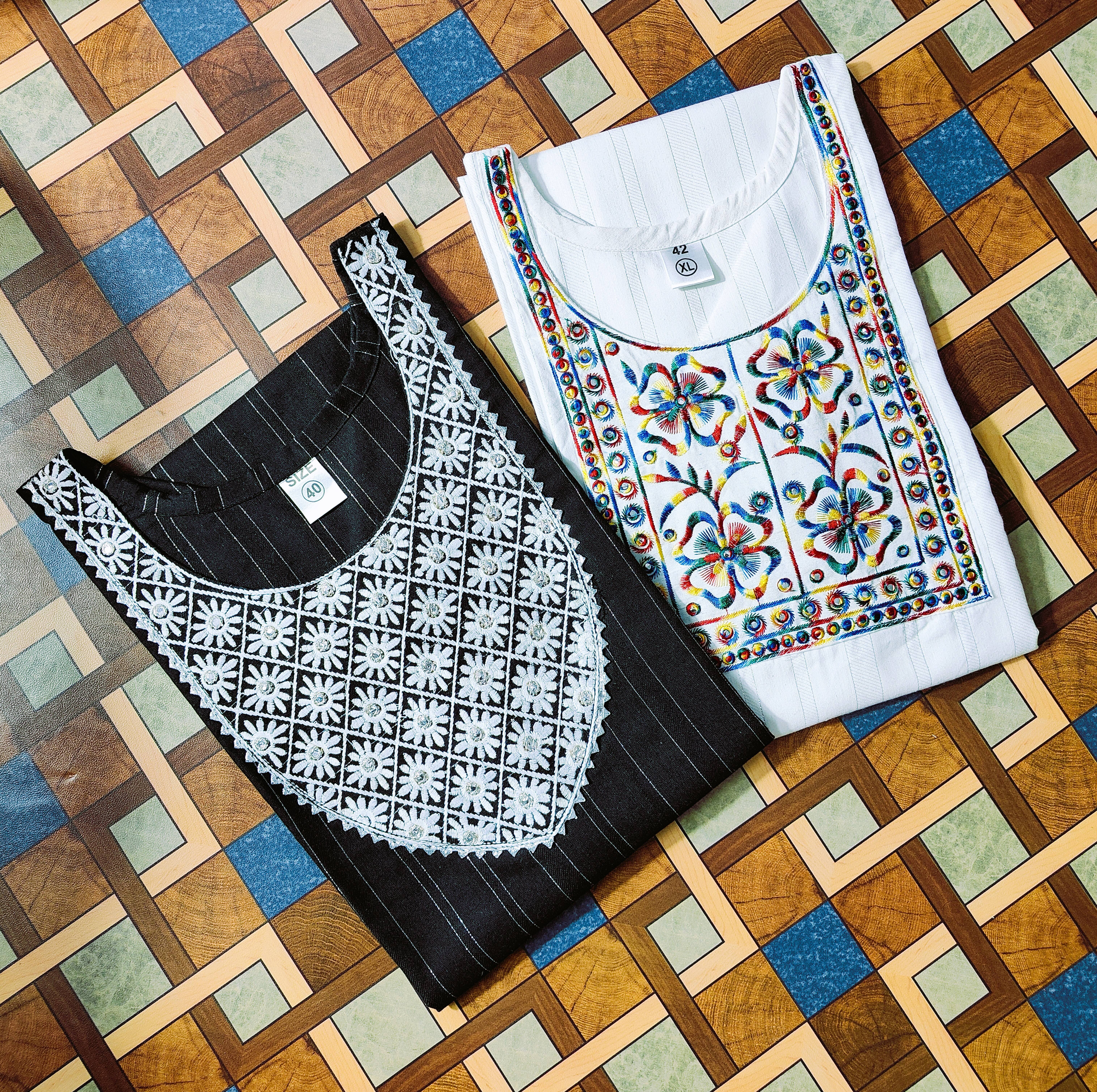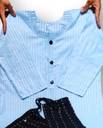This set can be a versatile addition to your wardrobe, ready to be accessorised as per your whims, for an elevated appeal. For instance, pair it with oxidised jewellery and heels for a traditional occasion or minimal studs and flats for an understated elegance.