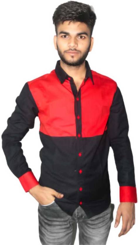 Men Regular Fit Color Block Spread Collar Formal Shirt