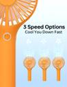 The fan features three-speed settings that you may modify to fit your requirements and preferences for comfort. This fan can provide you with a mild breeze, a moderate wind, or a strong gust. With the 3 speed settings, you may select the ideal level of airflow for any given circumstance. This adaptability ensures that you will always have optimum cooling, whether you're lounging at home, working, or enduring the summer heat outside. You can have complete control over the speed thanks to the user-friendly design.
