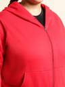 Red solid winter wear women sweatshirt, Hooded, full sleeve, zip closure, straight hem