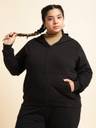 Black solid winter wear women sweatshirt, Hooded, full sleeve, zip closure, straight hem