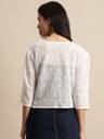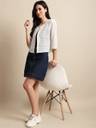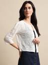 Off White self design open front regular shrug, has three-quarter sleeves, straight hem