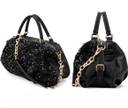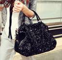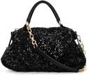 Women Shiny PU Leather Handbag Tote Black Sequined Crossbody Bag Top-Handle Bag