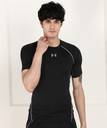 UNDER ARMOUR UA HG ARMOUR SS Men Solid Round Neck Polyester Black T-Shirt