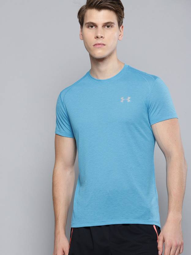 Men Solid Round Neck Polyester Light Blue T-Shirt