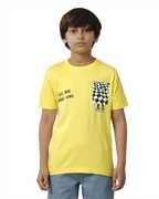 Under Fourteen Only Boys Self Design Pure Cotton Regular T Shirt (Blue, Pack of 1)