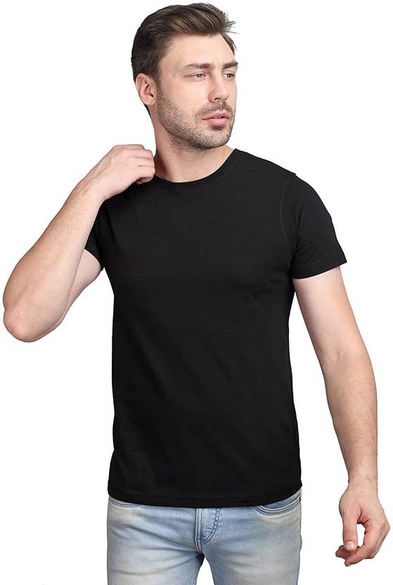 Men Solid Round Neck Cotton Blend Black T-Shirt