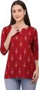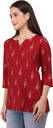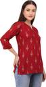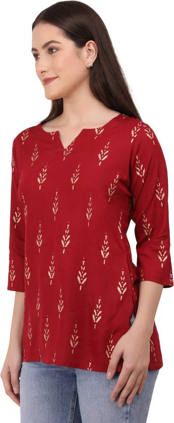 This beautifully stitched ladies tunic short kurti top will make you star of the moment. It features floral print on maroon color all over and made of soft cotton fabric. Pair it with a women western wear bottom like denim jeans, leggings, jeggings for casual day out. Can also be worn with women formal trouser for office as work wear or with straight palazzo to give semi ethnic look. A multi use product must have for your collection.