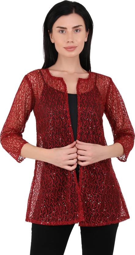 UNFAKENOW Women Jacket Style 3/4th Sleeve Maroon Shrug