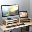 UniAart Monitor Stand Riser Wood PC Monitor Stand with 2-Tier Storage Organizer Desktop Stand for Laptop, Projector, Printer, Small TV Riser Space Saving Wooden Wall Shelf (Number of Shelves - 2, Gold)