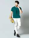 Men Striped Round Neck Cotton Blend Green T-Shirt