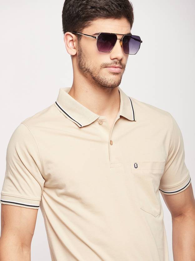 UNIBERRY Solid Men Polo Neck Beige T-Shirt