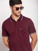 UNIBERRY Solid Men Polo Neck Maroon T-Shirt